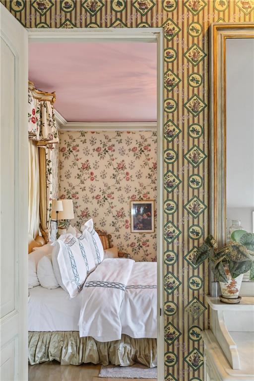 An extraordinary opportunity to own Ken Fulk's fully furnished private residence. This captivating 4,973 square foot mansion, built in 1854 embodies the effortless elegance and rarified lifestyle of a bygone era, nestled in one of the French Quarter's most discreet and charming blocks. This historic residence, recently home to billionaire Paul Allen, has been meticulously reimagined as a modern sanctuary, with interiors praised as being among "the most beautiful rooms in the world." The home offers bespoke features and amenities, including a ground-floor recording studio, ideal for private concerts, lively gatherings, or podcasting, which has hosted renowned musicians. Other unforgettable features include: a stone-white staircase from an Italian palazzi with French ironwork, gilded and hand-printed chinoiseries wallpaper salon with a 60-candle Italian chandelier, a Czainski hand-painted dining and drawing room with a hidden door, wood-grained elevator with Delafosse engravings and a secluded courtyard and a lushly planted wraparound gallery. The primary suite features upholstered, Swedish reverse, hand-printed cotton, a huge bathroom with tiles from the St. Petersburg factory used by Peter the Great, and an enormous hidden dressing room. Additionally, Ken Fulk's impeccably furnished guest home at 532 Governor Nicholls is available.